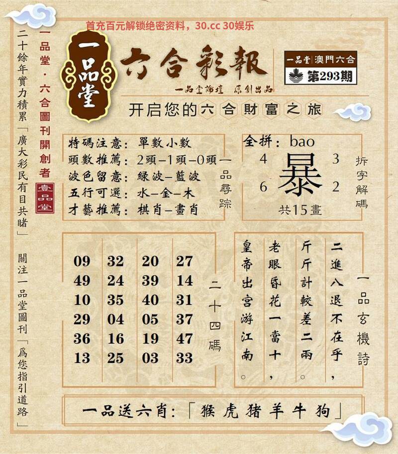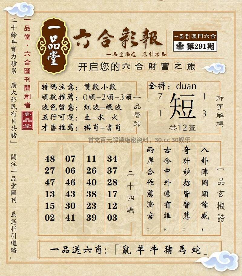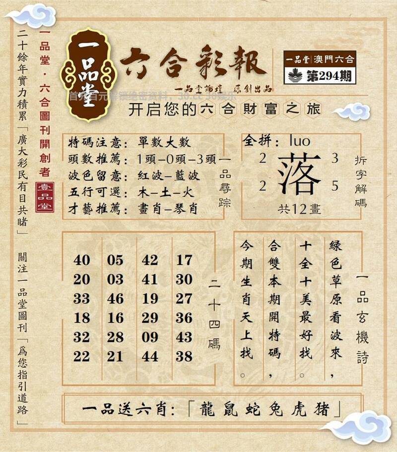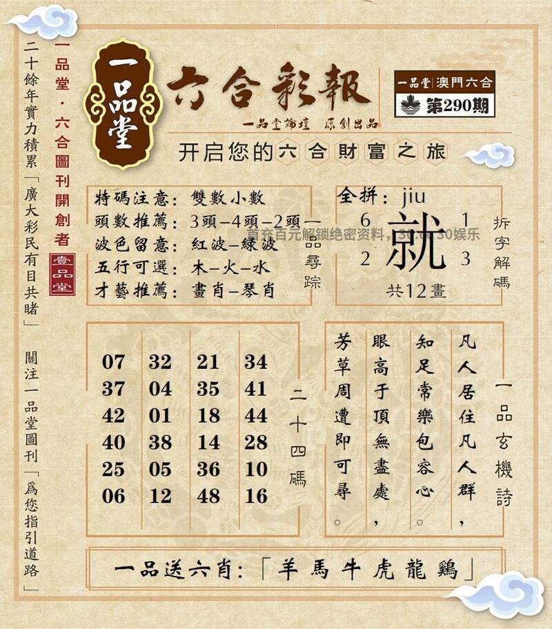 295期:百晓生网→【平特一肖】好资料